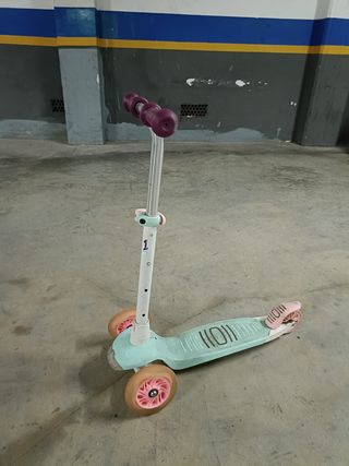 Patinete niños niñas B1 500 decathlon 3 ruedas. Desde 80cm a 120 ideal para empezar a deslizarse. Ruedas delanteras con luces. Tengo la caja. Usado. En buen estado.
