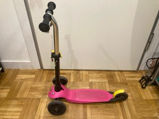 Patinete de tres ruedas de Decathlon en color rosa. Ideal para los más pequeños. - Tres ruedas para mayor estabilidad. - Manillar ajustable. - Plataforma antideslizante.