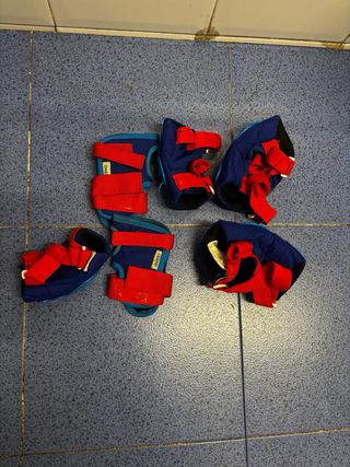 Set de protecciones para patinaje de la marca Decathlon. - Incluye rodilleras y coderas. - Color azul y rojo. - Cierre con velcro. Usados pero aún se pueden aprovechar.