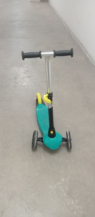 patinete de decathlon de 2 a 5 años esta sucio y bastante usado pero sigue funcionando perfectamente las ruedas de alante tienen luces q funcionan. nuevo cuesta 49,99€