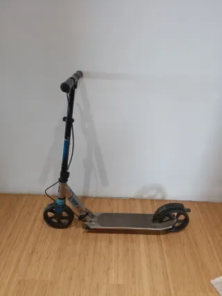 Usado en perfecto estado y funcionamiento. Descripcion de Decathlon: Este patinete, fácil de manejar y supercómodo, se ha diseñado para que tus hijos de 1,10 m a 1,50 m puedan utilizarlo regularmente en los paseos o para ir al colegio. Plegable y fácil de manejar a los niños les encantará moverse rápidamente con este patinete. Tiene un freno en el manillar y una suspensión delantera. Perfecto para edades de 6 a 9 años.