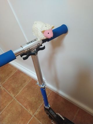 Patinete de Decathlon en color azul, perfecto para paseos y diversión. - Incluye una simpática figura de oveja en el manillar que es una bocina. - Diseño resistente y funcional. - Se pliega para guardarlo o llevarlo en el maletero del coche