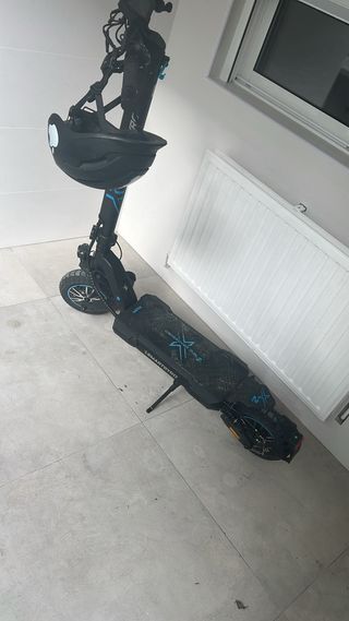 Patín eléctrico Ecoxtream Tank M41 en color negro y rojo.Solo 300km. - Doble motor. - Bateria de 20 amperios que da una autonomía real de unos 80km(limitado a 25km/h y a un motor) - Tengo factura y caja del patín. - Está limitado a 25 y se puede deslimitar a unos 80km/h para circuito. - Cada motor de 1000w nominales con picos de unos 2000w de pico cada uno. - Patín muy bien cuidado y ningun accidente. - Con el patín doy un casco de moto Cross con gafas retirables, el cargador y la caja del patín. - Ni las fotos ni ahora lo tiene puesto pero viene con un manillar de mtb de regalo. PRECIO NO NEGOCIABLE. NO HAGO ENVIOS. DUDAS AL PRIV.