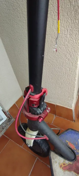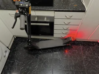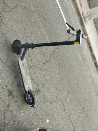 Patinete eléctrico de color negro. funciona perfectamente solo que - Manillar roto pero esta pegada con cinta negra -la luz de atras rota y los frenos no funcionan bien - acelera rapido cargador incluido venta solo en persona no envios
