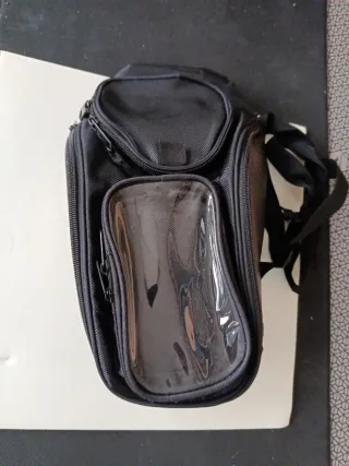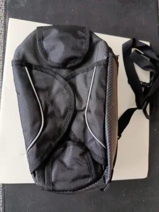 Bolso diseñado para patinetes eléctricos, con compartimento transparente. - Material textil resistente. - Cierre con cremallera. - Correa ajustable para colgar.