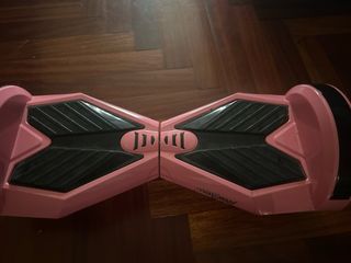 Patinete eléctrico tipo hoverboard en color rosa. - Diseño moderno y llamativo. - Superficie antideslizante para mayor seguridad. - Ruedas con banda negra.