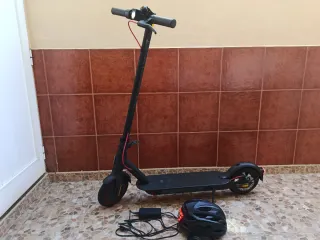 Se vende patinete eléctrico junto con un casco con luces led (valorado en 60€, sin uso) y una bolsa. 25 km de autonomia, velocidad máxima 45km/h - Patinete eléctrico. - Casco. - Bolsa de transporte. Solo se le han hecho 5 km. Lo vendo por no usar.