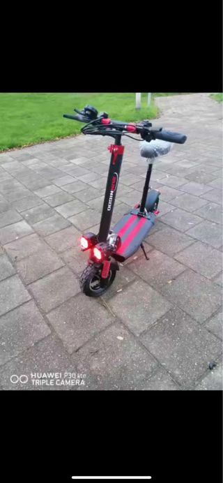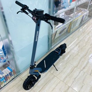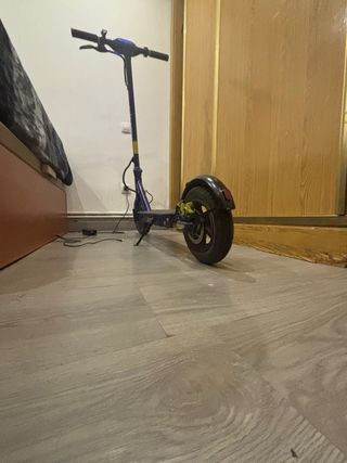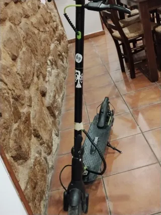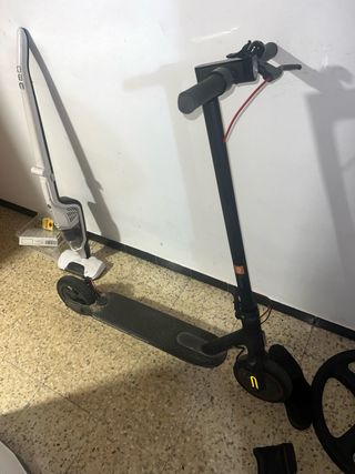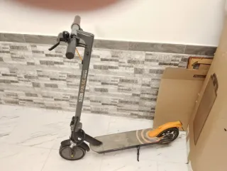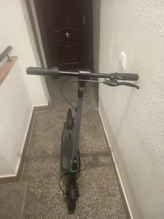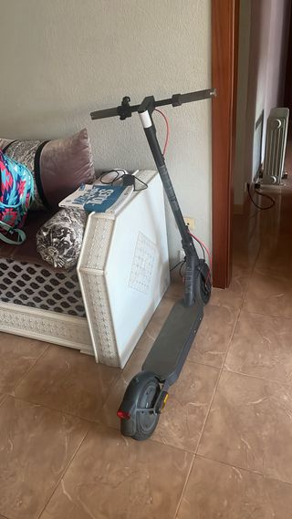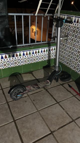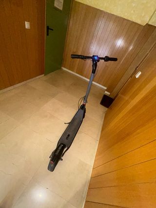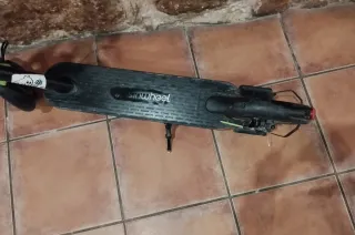 Patinete eléctrico en color gris. - Manillar ajustable. - Rueda delantera y trasera. - Freno trasero. Lo cambio por algin iphone 15 pro con buena salud o un xiaomi modificado 60km de autonomia Esta de serie completamente y va perfecto y con cargador original
