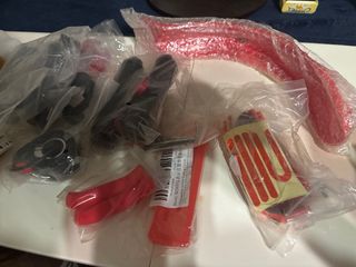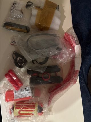 Lote de recambios para patinete eléctrico. - Puños de goma rojos. - Reflectores. - Piezas de plástico rojas.(embellecedores de manetas) - Cinta de agarre roja y amarilla. -acelerador electrónico -Toma de corriente -discos de freno ,pastillas y pinzas -cable de freno -arandela de dirección,enganche -Guardabarros...... (Kik completo para patin xiaomi)