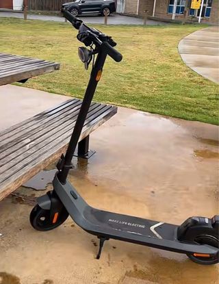 Patinete eléctrico Navee en color gris oscuro. Diseño moderno y funcional. - Manillar ajustable. - Plataforma antideslizante. - Ruedas neumáticas. - Prácticamente como Nueva.