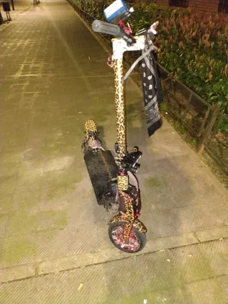 Patinete eléctrico Xiaomi con un diseño llamativo y personalizado con pegatinas. - Cubierta decorada con pegatinas de estilo urbano. - se vende por qué ya no lo uso, tiene la rueda trasera pinchada, solo es repararla i ya está, tengo todos sus tornillos guardados, funciona perfectamente, incluye su cargador