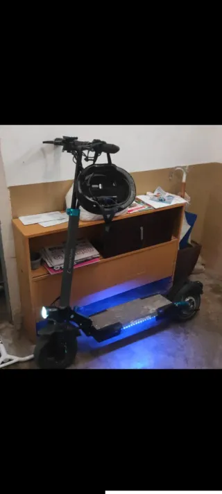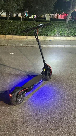 Patinete eléctrico en buen estado, ideal para desplazamientos urbanos. Cuenta con luces LED azules para mayor visibilidad. - Color: Negro - Luces LED: Azules - Frenos de disco -Dos motores