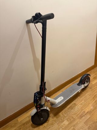 Patinete eléctrico Xiaomi en color blanco. En bastante buen estado. Siempre lo uso mi mujer para hacer recados. Dibujo de los neumáticos muy bien y la batería también está en muy buenas condiciones. Si mantenimiento siempre a estado al día. El cargador también está incluido.