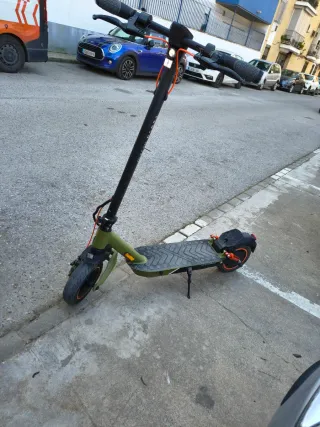 Patinete eléctrico con un diseño moderno y funcional. Tiene 89km comprado en reyes 499€ me costó - Color verde y negro. - Plataforma antideslizante. - Ruedas con detalles naranjas. - Pata de apoyo integrada. Por la DGT