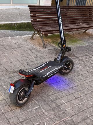 Patinete eléctrico Rorway Pro en color negro. - Plataforma ancha y robusta. - Manillar ajustable. - Ruedas de gran tamaño. Batería cambiada centralita delimitadora a 55 km suspensión de atrás cambiada la de alante es de serei rueda de atrás recién cambiada pastillas de freno y disco antes de venderlo lo limpio entero. ¡ hago cambios ! Para imfo hablame por privado