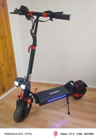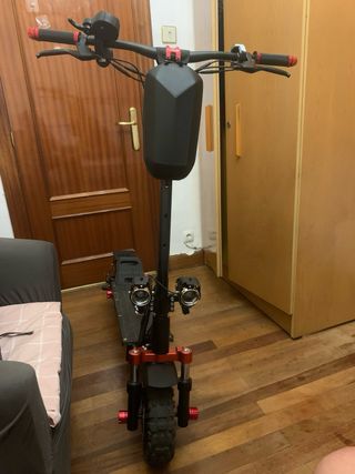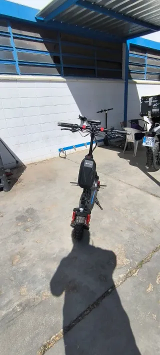 Patinete eléctrico en buen estado. - Manillar ajustable. - Pantalla digital. - Ruedas todoterreno. Tiene dos motores de 1000w cada uno, hace picos de 2000w, velocidad 25km/h (delimitable a 65 con mando), le puse dos luces extra para mejorar la visibilidad de noche, 65km de autonomia (limitado a 25km/h), no a tenido accidente, siempre cuidado y limpio, no a circulado por barro de dana, precio 850 el patinete con el cargador, cambio de nombre incluido, 920 y doy varios kits de pastillas de freno, los neumaticos antiguos de fabrica por si quieres hacer el animal con ellos (estan usados) y un par de neumaticos nuevos a estrenar.