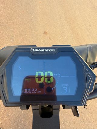 Patinete eléctrico SmartGyro crossover dual max 2 con luces LED homologado por la DGT tiene 475 km uso de medio año masomenos lo utilizaba para ir a trabajar y ahora lo vendo porque ya tengo coche. Lo vendo con el cargador y la factura de compra que se compro en el decatlhon. TODVIA TIENE GARANTIA. - Diseño moderno y robusto. - Manillar ajustable. - Ruedas todoterreno. - 2 motores de 500w cada uno total 1000w