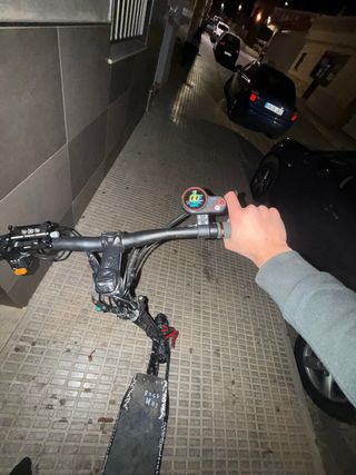 patinete eléctrico todoterreno potente, con doble motor de 1200W (2400W total), velocidad máxima de 70 km/h, autonomía de hasta 80 km y batería de 52V 23.2Ah, destacando por sus frenos hidráulicos, suspensión doble, ruedas neumáticas de 10" todoterreno, e iluminación completa. Manillar en fibra de carbono,(cambiado) el patinete está totalmente nuevo lo mires por donde lo mires.se puede ver y probar sin compromiso es una pasada,regalo otro faro delantero sin estrenar