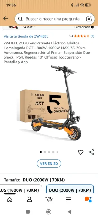 • De media, comprar Patinete eléctrico 2000W en Wallapop es un 44% más barato que comprar este tipo de producto nuevo