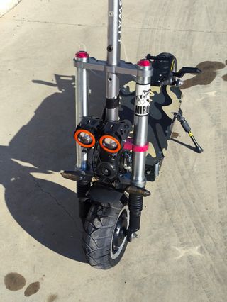 Patinete eléctrico potente con doble motor. - 3000W de potencia en cada rueda, total 6000W. - Diseño robusto y deportivo. - Suspensión delantera y trasera. Precio negociable Doy intermitentes y dos bolsos