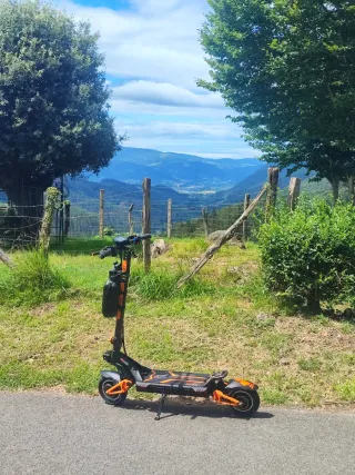 Patinete eléctrico Kukirin G3 Pro en color negro y naranja. 80 km de autonomía Incluye dos baterías para mayor autonomía. 4x4 puedes ir por donde quieras pistas de monte etc, Altavoz blutooth,luces led con mando Se puede ir con un motor o con los 2 motores.1200 w cada motor.. - Diseño deportivo. - Ruedas todoterreno. - Manillar ajustable. Una pasada
