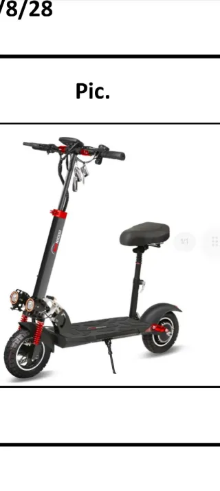 Patinete eléctrico en buen estado, listo para usar. - Asiento marrón cómodo. - Cesta delantera para llevar objetos. - Ruedas negras con detalles rojos.se vende por no darle uso.funciona perfectamente .últimos días al precio que lo he puesto,super rebajado.