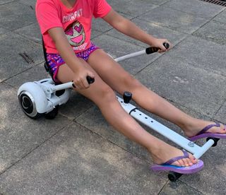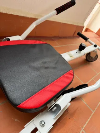 Asiento para convertir tu hoverboard en un kart. - Compatible con la mayoría de hoverboards. - Manillar ajustable. - Ruedas de goma.