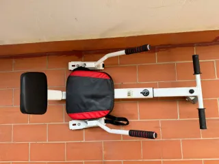 Asiento adaptable para patinete eléctrico. Diseñado para ofrecer mayor comodidad. -Esta nuevo , apenas tiene dos usos - Asiento acolchado en polipiel negra y roja. - Estructura metálica blanca. - Manillar con empuñaduras negras y rojas.