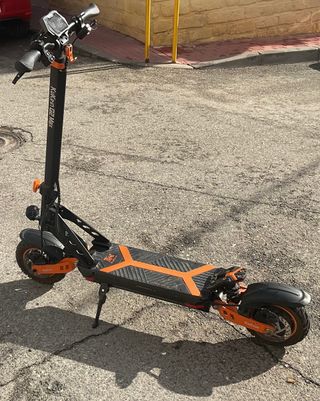 Patinete eléctrico Kukirin G2 MAX 1000W en color negro y naranja. Diseño robusto y moderno. Lo compré en 2022 y apenas lo he usado. Batería de 20Ah - 48V. - Manillar ajustable. - Ruedas todoterreno. - Sistema de suspensión. - Asiento incluido.
