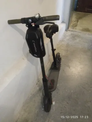 Patinete eléctrico en buen estado, ideal para desplazamientos cómodos. Ha recorrido 1.400 Km. - Incluye asiento. - Cestillo para llevar objetos.