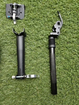 Conjunto de asiento y piezas para patinete eléctrico. ( Proviene de KUKIRIN ). - Asiento negro. - Soporte de asiento. - Mecanismo de ajuste.