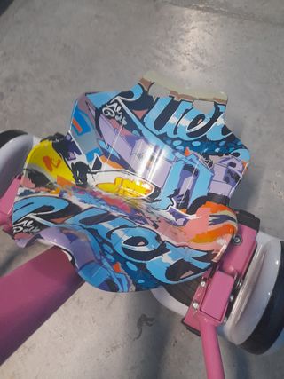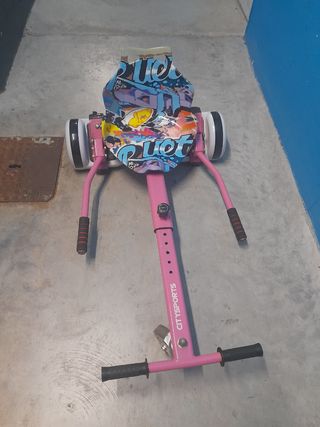 Patinete eléctrico Overboatd de color rosa con asiento y luces en ruedas - Diseño llamativo con pegatinas. - Ruedas anchas para mayor estabilidad. - Manillar ajustable en altura.
