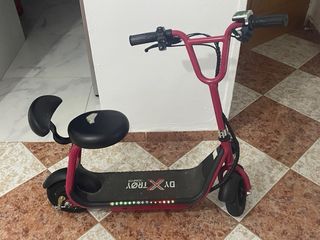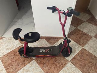 Patinete eléctrico DY X TROY con asiento. - Color rojo. - Diseño moderno. - Ruedas delanteras y traseras.