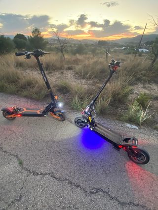 Patinete eléctrico Sunnigoo. El patin esta en perfecto estado comprado hace poco y vendido por falta de uso. El patin se cambia por otros patines/moviles o cosas parecidas. - Perfecto estado - Negro con detalles rojos - 50-55 km/h - Incluye cargador - 800W - 48V 13600mAh de bateria - Pantalla con menu oculto accesible - Acelerador de gatillo - Frenos en perfecto estado - Viene con sillin ajustable Los focos alumbran mucho y viene con luz debajo de la tabla por lo demás esta todo perfecto. PRECIO NEGOCIABLE Y SE CAMBIA POR OTROS PATINES O MOVILES