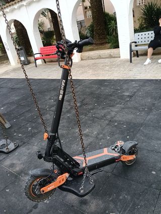 Patinete eléctrico Kukirin G2 Pro en color negro y naranja. - Diseño deportivo y robusto. - Manillar ajustable. - Ruedas todoterreno. -1.800km -Lo único que le pasa es que tiene la rueda trasera pinchada, pero si la inflas dura unos cuantos días inchada -Lo vendo por cambio de vehículo -Limitable a 25km/h -Trae cargador y un sillín -Precio negociable -Cualquier duda preguntar sin compromiso