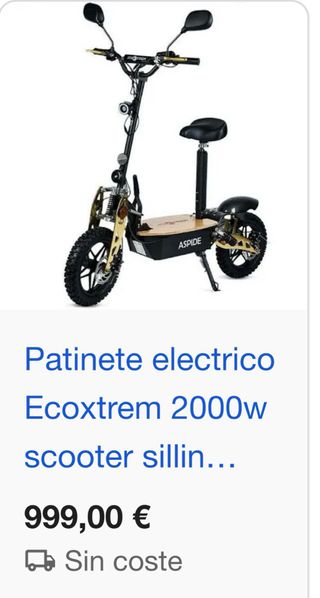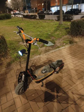 Patinete eléctrico Ecoxtrem de 2000w con sillín, ideal para desplazamientos urbanos. - Potencia de 2000w. - Incluye sillín. - Diseño robusto. Todo en buenas condiciones menos el motor electrico que esta deteriorado de el tiempo bateria de litio en perfecto estado frenos delenteros como nuevo los traseros estan desgastado pero tengo un par de respuesto