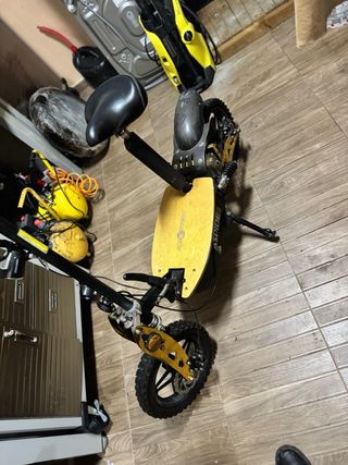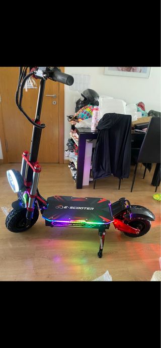 NO ENCIENDE TIENE UN FALLO ELECTRICO PERO SI LO SABES ARREGLAR VA TODO PERFECTO Patinete eléctrico con ruedas todoterreno y suspensión delantera y trasera. - Rueda trasera maciza antipinchazos - Sistema de suspensión para mayor ccomodidad. -permite sillin - precio de coste 300 euros -hasta 45km/h