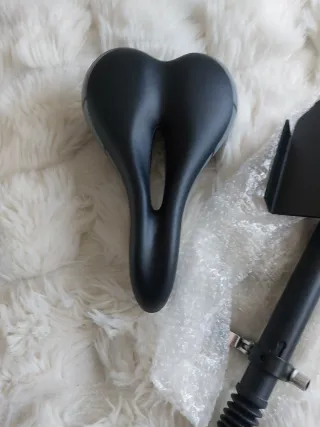 Sillín de repuesto para patinete eléctrico, con amortiguación para mayor comodidad. Nunca lo he usado. - Diseño ergonómico. - Material: Cuero sintético. - Columna con resorte. - Ajustable en altura. - Base metálica resistente.
