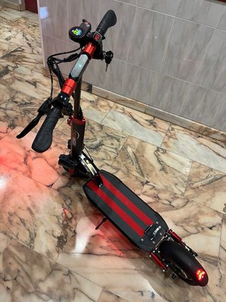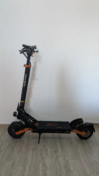 KuKirin G2 Max (847 km). Impecable. Sin holguras, totalmente ajustado, IPX4. Frenos Hidráulicos NUTT (140 euros), discos 140mm de calidad + pastillas nuevas. Tornillería varia de serie sustituida por tornillos de alta resistencia (discos, chasis, etc.). Puños con reposapalma y soporte móvil de aluminio. Motor 1000W (pico 1200W). Batería 20Ah (48V) "80km autonomia", 55km/h limitable a 25km/h. Suspensión regulable, neumáticos 10x3 offroad, intermitentes, sillín opcional. INCLUYE: Alarma con mando, antirrobo con soporte manillar, factura y certificado CE. Se puede ver y probar, muy mimado pero sin uso.