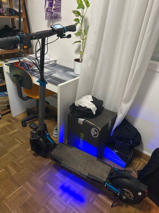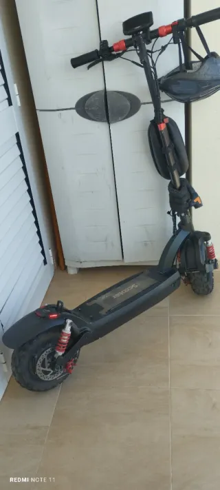 Patinete eléctrico Kukirin G2 Max con un diseño deportivo. Potente y en excelente estado, muy cuidado y en perfecto funcionamiento. Se ha realizado una revisión y puesta a punto en tienda especializada en Febrero 2025. Ideal para ciudad y trayectos diarios, con gran autonomía y potencia. 🔹 Motor potente (hasta 1000W) 🔹 Velocidad máxima hasta 55 km/h 🔹 Gran autonomía (hasta 80 km aprox., según uso) 🔹 Suspensión delantera y trasera para mayor comodidad 🔹 Ruedas grandes todoterreno 🔹 Pantalla LCD con velocidad, batería, modo, etc. 🔹 Sistema de plegado rápido 🔹 Freno de disco Se entrega con manuales originales y accesorios.