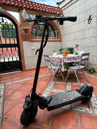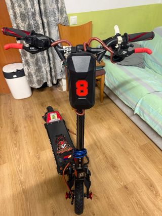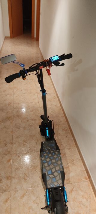 Patinete eléctrico con modificaciones. - Bateria cambiada de 23.4A que ofrece una autonomia superior a los 80 km - Velocidad ajustable desde 6 km/h hasta los 55 km/h - Ruedas todoterreno. - Manillar ajustable. - Habria que ponerle una pantalla de 52V, vale 20€ en AliExpress Por lo demas todo Perfecto