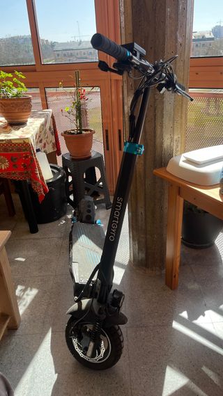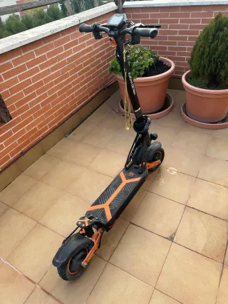 Patinete eléctrico Kukirin G2 Max en color negro y naranja. Diseñado para ofrecer una experiencia de movilidad urbana. - Diseño deportivo con luces LED. - Plataforma antideslizante. - Ruedas todoterreno. Vendo patinete kukirin g2 max ‐velocidad de 25k a 70km Dependiendo del peso, - rueda en buen estado - luz led modificado - amortiguadores doble - todo terreno Detalle mínimos como pequeño raspone El patines tiene tiempo conmigo, pero esta en buen estado, lo que si no tengo la factura ( es un patinete chino que ha salido muy bueno en calidad