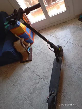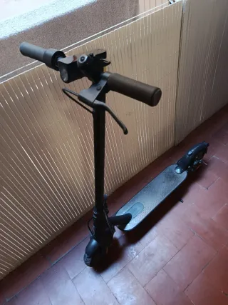 Patinete eléctrico Xiaomi, ideal para desplazamientos urbanos. Usado pero funciona perfectamente. Se ha cambiado hace una semana la rueda delantera. - Manillar con agarre antideslizante. - Pantalla digital integrada. - Cargador. - Maneta de freno. - Timbre.