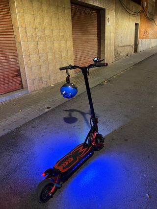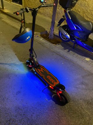 PATINETE ELÉCTRICO Características principales: ⚡ Motor potente de 1200W de pico con buena aceleración y capacidad para subir pendientes.  🚀 Velocidad máxima real de hasta 55 km/h (según peso y condiciones).  🔋 Autonomía: aproximadamente 50-60km por carga.  🔌 Batería: Litio 48 V (~13 Ah). Las luces funcionan correctamente y abajo tiene unas led que canvia de roja verde y azul. 🛞 Ruedas lisas de 10″ con doble suspensión para confort incluso en terreno irregular.  🛑 Frenos de disco delanteros y traseros para una frenada segura. ELECTRÓNICA Y MOTOR JP DE LOS MEJORES DEL MERCADO muy bien cuidado y en buen estado.