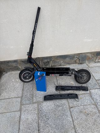 Patinete eléctrico Dualtron II. - Diseño robusto y deportivo. - Ruedas todoterreno. - Bolsa de transporte en el manillar. - Controladora basada en VESC configurable desde el movil. - Frenos hidraulicos nutt de dos pistones - Autonomia de unos 60-70kms con carga completa. - Dos baterias de 60v y 20ah. - Se vende con repuestos de pastillas de freno y camaras para las ruedas. - Cargador minimotors 60v original. - Motores futecher. - Luz en el manillar a bateria. - Precio algo negociable, abstenerse de ofertas absurdas.