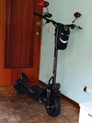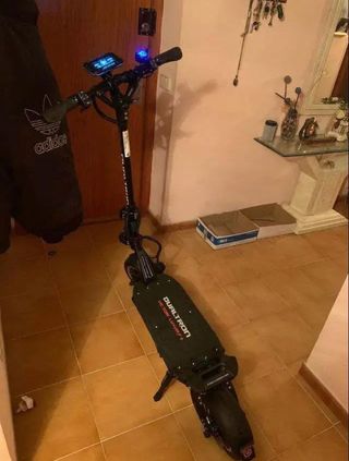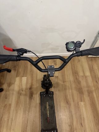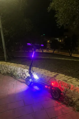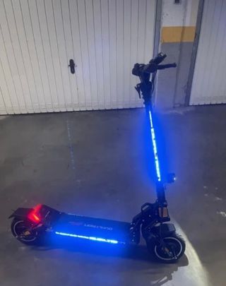 Patinete eléctrico iX7 Pro con diseño moderno y robusto. Venta urgente!! - Plataforma antideslizante. - Rueda delantera con suspensión - Mastil desplegable - Dual motor - 60-70 km/h - Modificaciones solo estéticas: cubre cables rojo, llave voltímetro de contacto, Guardabarros se puede poner y quitar a tu gusto. - Luz delantera y trasera,luces led azules,intermitentes a los dos lados alante y atrás - 2500 km - 1000 watios por motor = 2000w - Muy potente , alcanza su velocidad máxima con facilidad y rápidamente - Poco usado,solo lo usé en verano - Precio no negociable - Está como nuevo Dualtron,smartgyro, Xiaomi,kukirin,kaboo