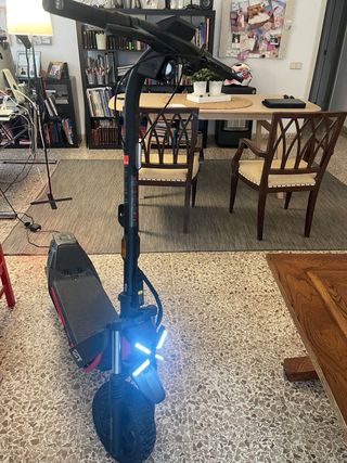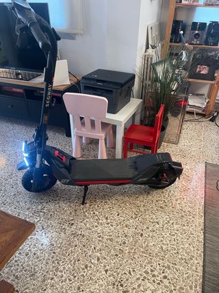 Vendo mi patinete eléctrico Ninebot, usado pero en excelente estado y funcionando perfectamente. Ha sido muy poco utilizado en los últimos años. Incluye: • Cargador original • Neumático y cámara de repuesto (originales, sin usar) El único detalle a mencionar: el neumático delantero tuvo un pinchazo que fue reparado. Durante la reparación, aparecieron algunos pequeños arañazos en el plástico frontal, al desmontar la rueda, pero son únicamente esos. Por lo demás, el patinete está en estado óptimo y funciona como nuevo.