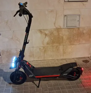 patin electrico con solo un año de antigüedad,, funciona como el primer dia, tiene 40km de autonomía y 4 velocidades. Sus anchas ruedas y su tracción trasera de 750 w permiten una estabilidad y seguridad mucho mayor que la de otros patinetes normales, la batería dura mucho y el paquete incluye cargador. La parte inferior es muy ancha y amplia. Su velocidad máxima es de 25km/h, la capacidad de la batería de 7650 mAh, y el tamaño de las ruedas 10’’. El sistema de tracción TCS permitirá subir las pendientes como si patinaras en llano. Manillar funcional con panel de 2’8 ‘’, Viene con una aplicacion en el que mediante bluetooth puedes bloquearlo, y buscarlo en el buscador de apple ante cualquier incidente INCLUYE INTERMITENTE DERECHO E IZQUIERDO
