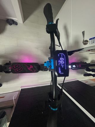 Patinete eléctrico Smartgyro Speedway Pro v2. Motor de 800w/ picos de 1200w. Manillar fijo, puños nuevos. Funciona todo, luces, frenos, motor, batería,timbre, pantalla ,etc... Lija personalizada. Tendra unos 1500km. La batería funciona, aunque ya se nota que no rinde como el primer dia, especialmente si lo usas deslimitado. Posibilidad de limitar/deslimitar con un botón. Apenas tiene holgura para lo que son estos modelos. Muy cuidado, sin golpes ni caidas. No ha circulado fuera de asfalto ni se ha saltado con el. Documento de certificación. Incluye cargador