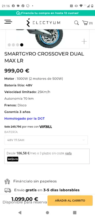 Patinete Eléctrico SmartGyro CrossOver Dual